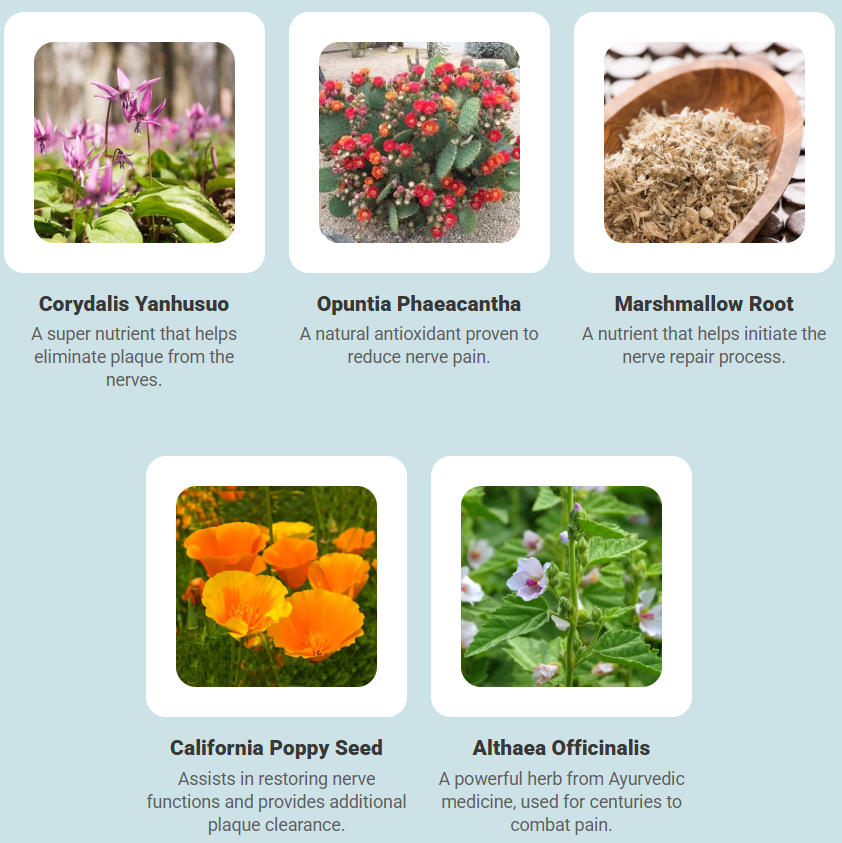 NerveCalm works by targeting the root causes of nerve pain. It contains ingredients like Corydalis Yanhusuo, which helps eliminate nerve plaque, and Opuntia Phaeacantha, which reduces inflammation and pain. Together, these ingredients promote nerve regeneration and improve overall nerve function, helping to alleviate discomfort and improve mobility.